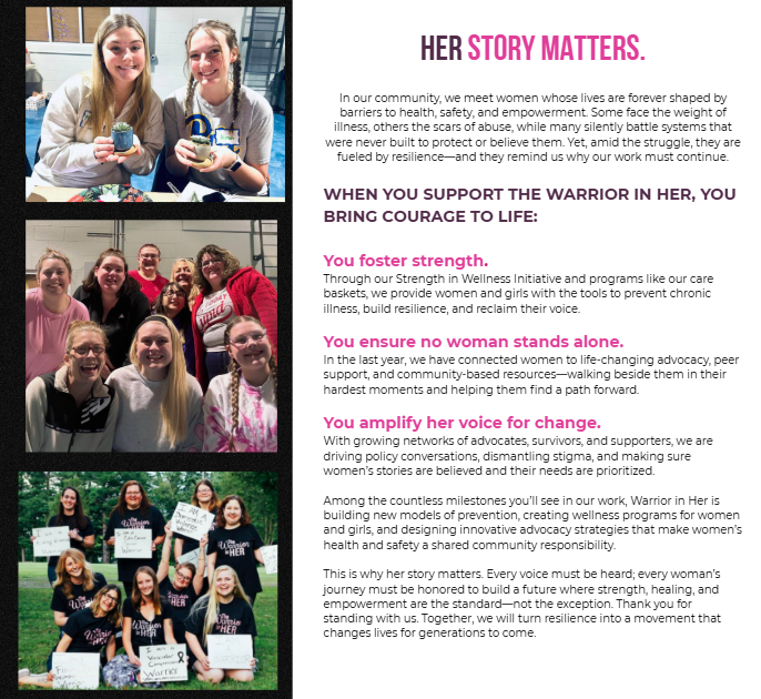 Through The Warrior in Her , we’re building a movement that transforms pain into purpose and challenges into change. This year, your generosity made a lasting difference in the lives of women, girls, and families across our region.